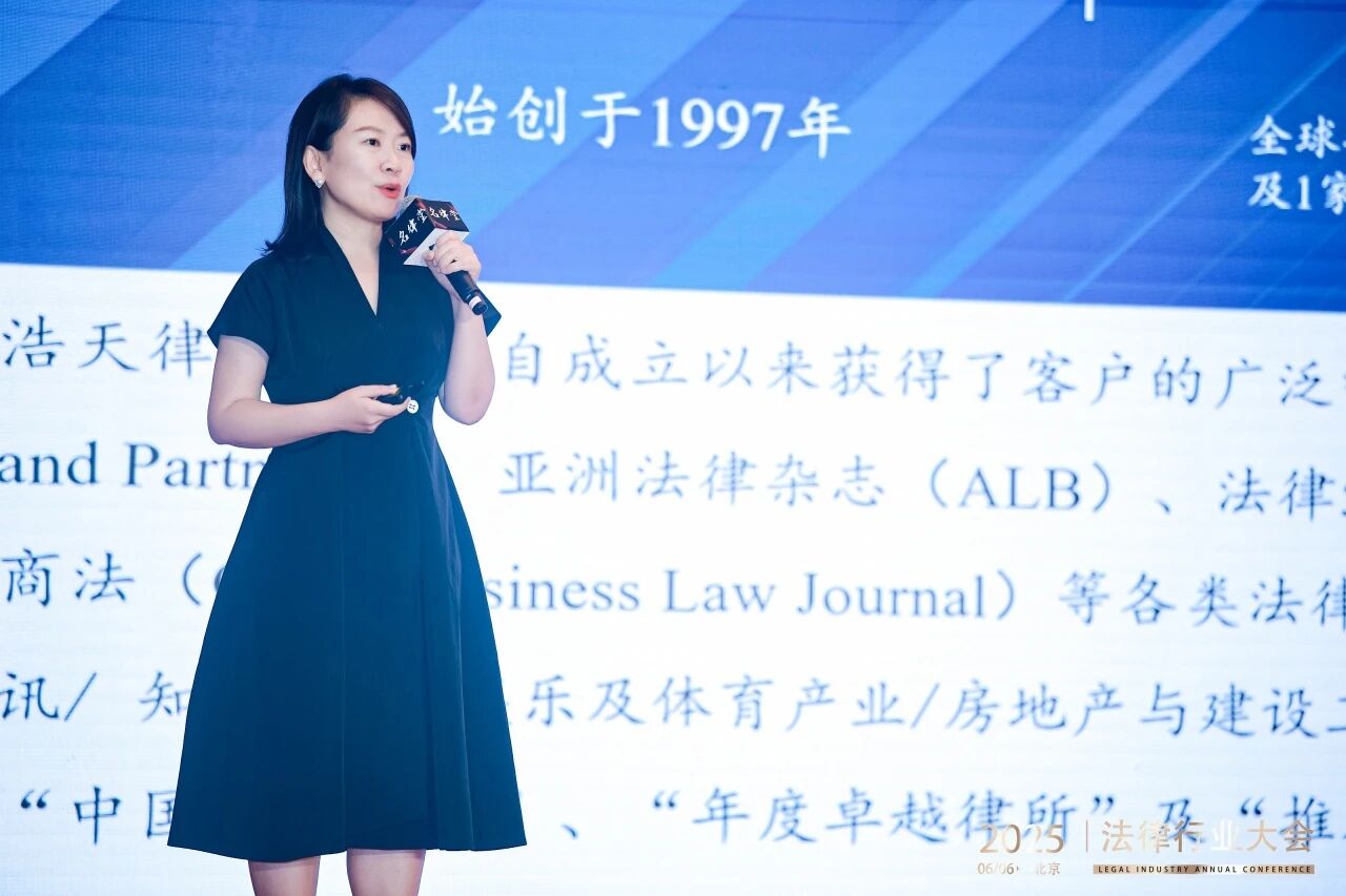 浩天律师事务所合伙人牟菲律师分享了“重大纠纷争议解决的趋势发展和应对策略”主题演讲,详细解读了重大纠纷争议解决的六大发展趋势,并从团队合作和技术应用两个层面提供了应对策略。