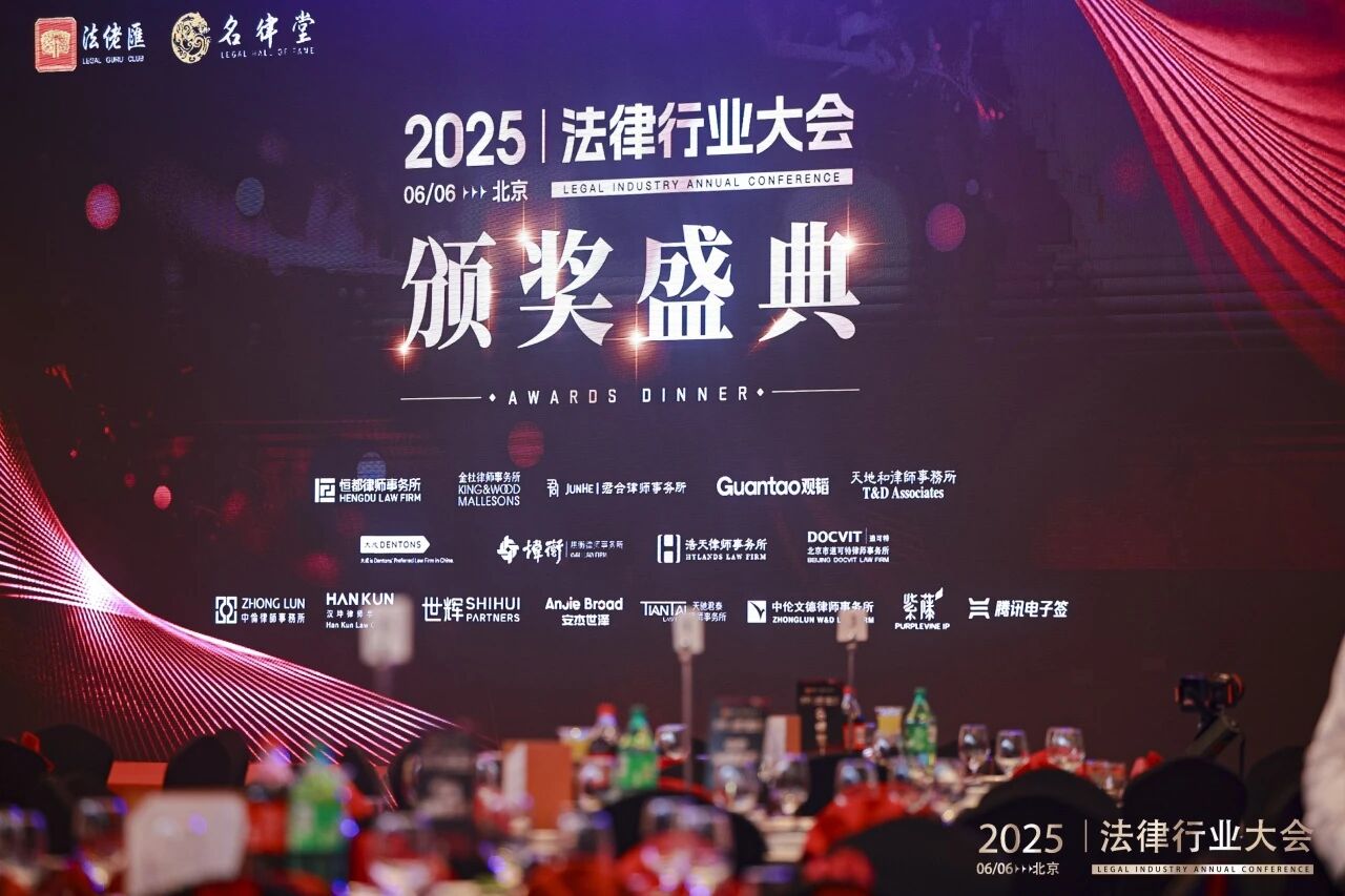 夜幕初降,霓虹灯下的玻璃幕墙与“大咖云集”的宴会厅相互映衬,桌上的奖杯奖牌在聚光灯下闪闪发光,显得格外庄重。晚场采用双厅合并的形式,将白天两个独立的宴会厅合二为一,超长的LED屏幕上播放着名律堂、法佬汇与合作伙伴的宣传介绍,在嘉宾们热切期待中,晚场的首个环节:颁奖盛典隆重启幕。