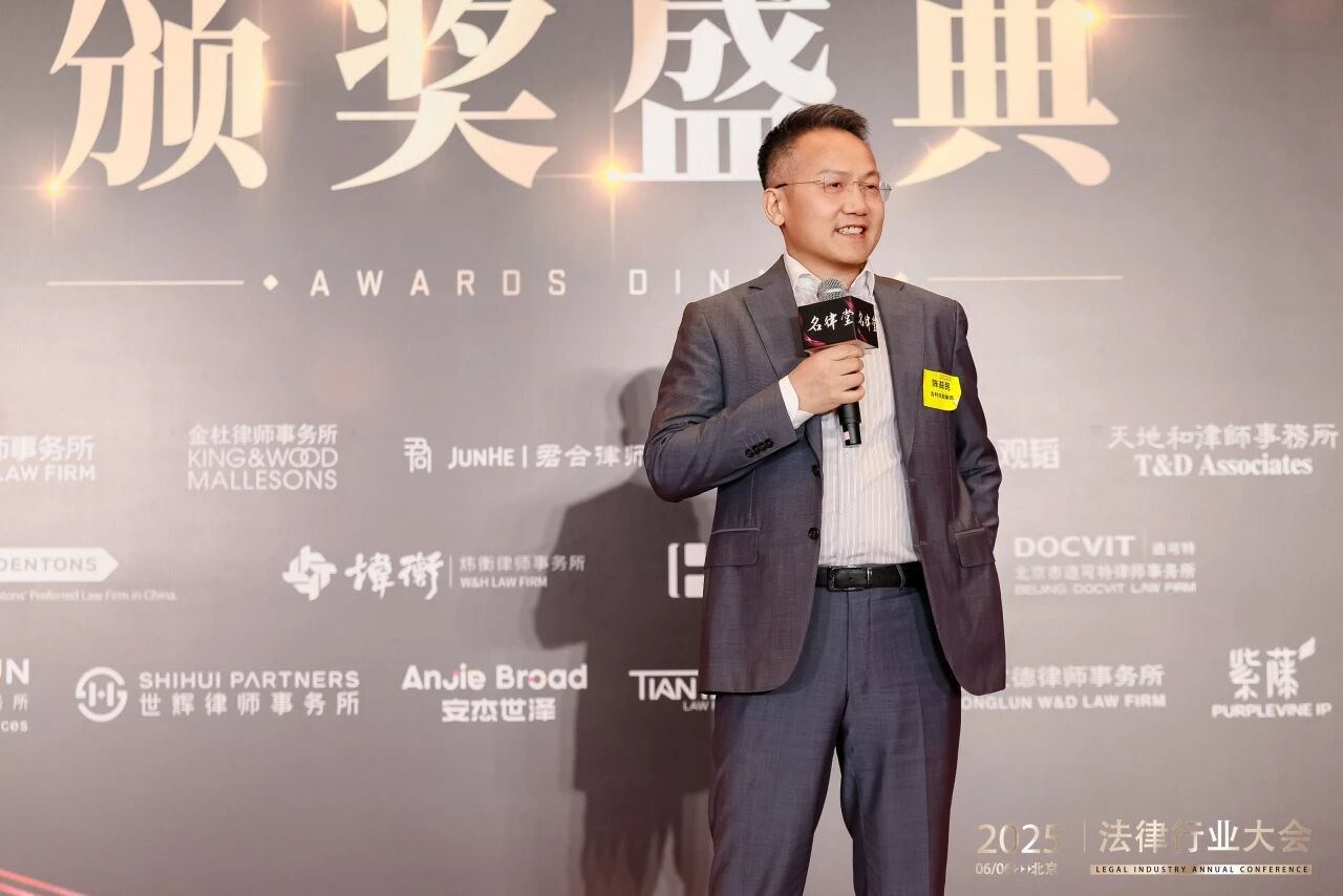 颁奖仪式正式开始,浙江吉利控股集团有限公司高级副总裁兼总法律顾问、首席合规官陈益民先生为君合律师事务所颁发“年度最佳律所”奖项。