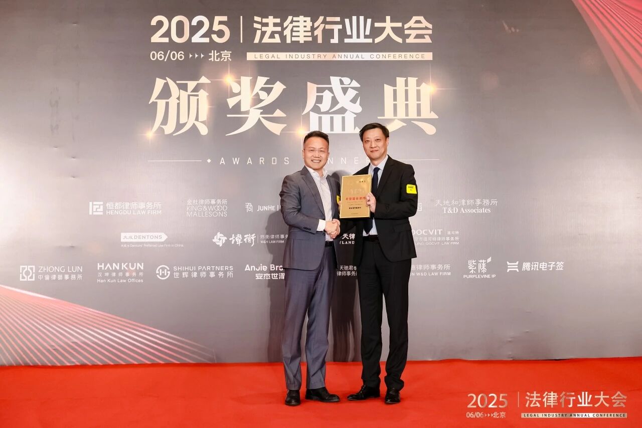 好丽友食品有限公司总法律顾问张剑君先生为中伦律师事务所、君合律师事务所、安杰世泽律师事务所、大成律师事务所、通力律师事务所、天地和律师事务所颁发“年度最佳案例”奖项。