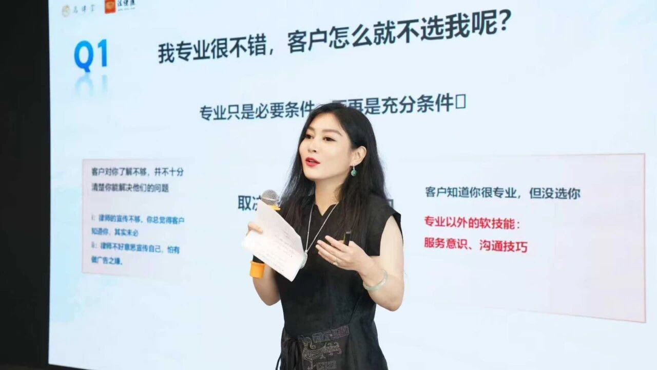 在主题分享环节,王迎军女士围绕 “法律服务获客十问” 展开深入剖析,以律师们普遍关心的十个问题作为切入点: