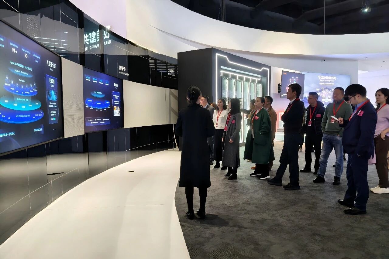 参观结束后,全体嘉宾在大厅合影留念,定格这次意义非凡的科技之旅,随后有序转场至会议室,共同期待即将开始的主题分享环节。
