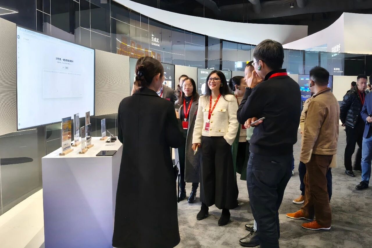 下午2点,在企业负责人的陪同下,嘉宾们开启了展厅参观之旅。环形展厅内,一系列AI“黑科技”轮番亮相,令大家连呼“震撼”。