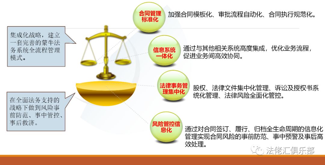业务的横向协同,是蒙牛各个业务部门,从业务——财务——税务——法务,各个模块之间是协同贯通的。