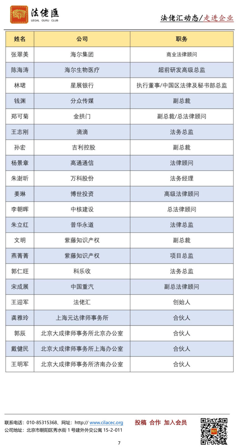 法佬汇的目标是通过组织各种活动,为各大公司的法总们提供学习交流的机会,从而促进企业法务队伍的提升与进步,更好地为公司服务。